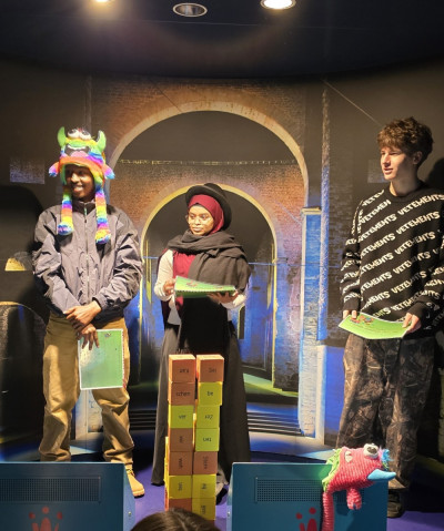 Der gemeinsame Ausflug ins wortreich in Bad Hersfeld war dabei weit mehr als ein Museumsbesuch. Er war ein praxisnaher Lernort für Kommunikation und damit ein idealer Baustein unseres Projekts. Teilnehmende aus Kassel und Bad Hersfeld konnten Sprache dort nicht nur hören oder lesen, sondern sehen, fühlen, ausprobieren und spielerisch begreifen. Während einer Führung wurden sie an Themen wie Hören, Sprechen, Erzählen und Wahrnehmen herangeführt. Das wortreich als anerkannter außerschulischer Lernort macht deutlich, wie viel Freude, Neugier und Selbstwirksamkeit entstehen, wenn Sprache nicht abstrakt vermittelt wird, sondern erlebt werden kann. Gerade für unsere Teilnehmenden, die häufig mehrsprachig sind oder erst seit kurzer Zeit Deutsch lernen, bieten solche Orte wichtige Impulse, um Barrieren abzubauen und Vertrauen in die eigene sprachliche Kompetenz zu gewinnen. Im Anschluss arbeiteten die Jugendlichen selbstständig mit einem Aufgabenpaket weiter, beobachteten, formulierten und vertieften das Erlebte. So wurde Sprachbildung zu einem aktiven Prozess – ganz im Sinne von Wirtschaft integriert, das systematisch fachliche, berufspraktische und sprachliche Förderung miteinander verbindet.